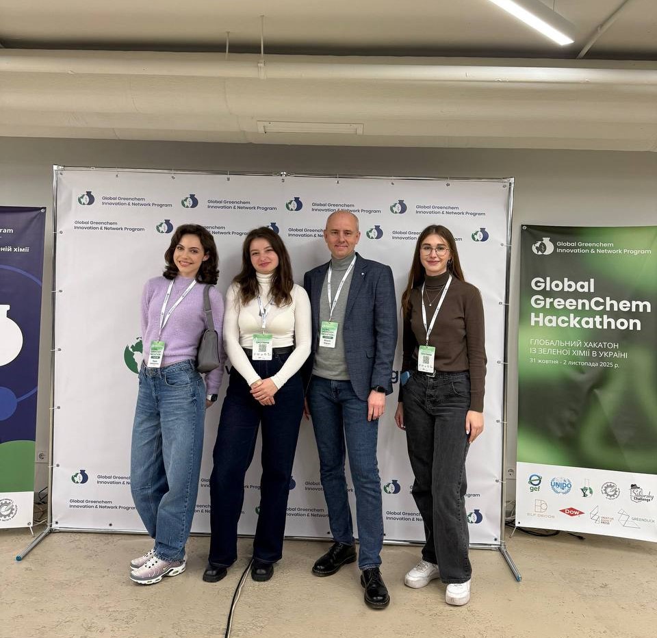 Команда учасників з Факультету біотехнології і біотехніки КПІ ім. Ігоря Сікорського – Горбачова Юлія (БТ-21), Долбещенкова Марія (БТ-21), Сапіташ Олександра (БТ-21) та їх керівник, доцент Клочко Віталій – стали переможцями Global Greenchem Hackathon 2025, посівши 1-е місце серед інших учасників. Командою було запропоноване рішення з розробки вододисперсійного латексу на основі мономерів терпену, отриманого шляхом біосинтезу.